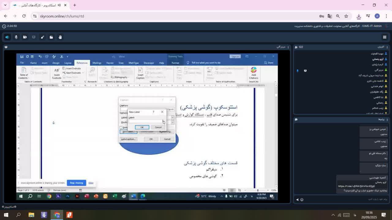 کارگاه کار با نرم‌افزار Word (آنچه از نرم‌افزار Microsoft Word نمی‌دانیم)  در روز شنبه ۲۹ شهریور، یکشنبه ۳۰ شهریور و دوشنبه ۳۱ شهریور ۱۴۰۴ با تدریس خانم مریم گلی (فارغ‌التحصیل دانشکده مدیریت و اطلاع رسانی پزشکی دانشگاه علوم پزشکی اصفهان)  و به همت کمیته تحقیقات و فناوری دانشجویی دانشکده مدیریت و اطلاع رسانی پزشکی دانشگاه علوم پزشکی ایران با همکاری کمیته تحقیقات و فناوری دانشجویی دانشگاه علوم پزشکی اصفهان و شهید بهشتی به صورت رایگان از ساعت 17 الی 19 و به صورت آنلاین در بستر اسکای روم برگزار شد.